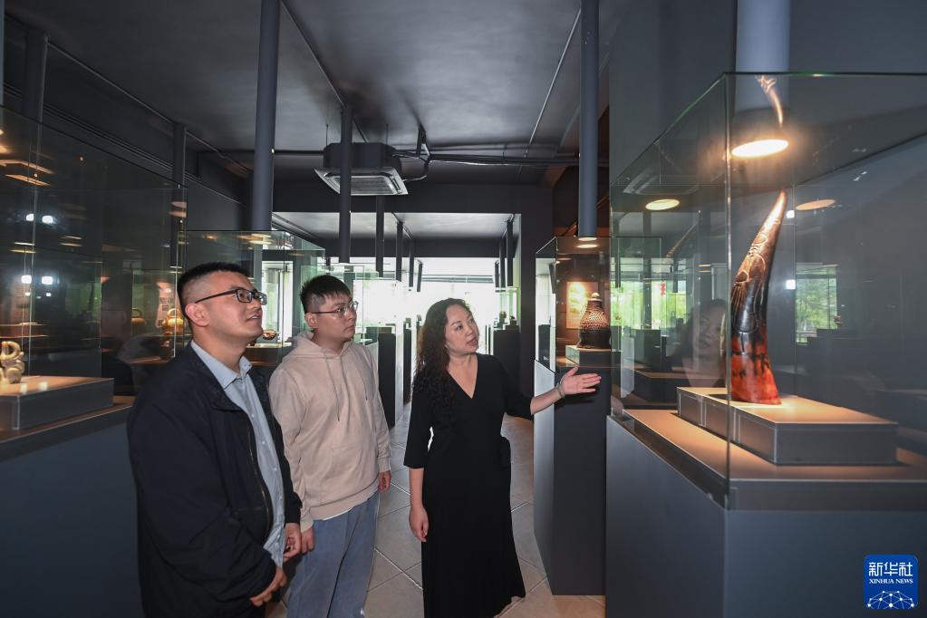 4月20日,在杭州市臨安區昌化鎮白牛村,羅星玥(右)向游客介紹牛文化博物館。2022年,羅星玥帶著(zhù)運營(yíng)團隊在白牛村布局牛文化博物館、鄉村小酒館等業(yè)態(tài),成為白牛村村落景區的投資運營(yíng)商。