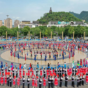 當日,四川省級非遺“興文苗族花山節”展示傳承活動(dòng)在四川省興文縣市民廣場(chǎng)舉行?;顒?dòng)上融入傳統祭祀、農耕文化、民族團結等內容的展演和苗家長(cháng)桌美食宴,讓賓客感受到熱烈的節日氛圍。