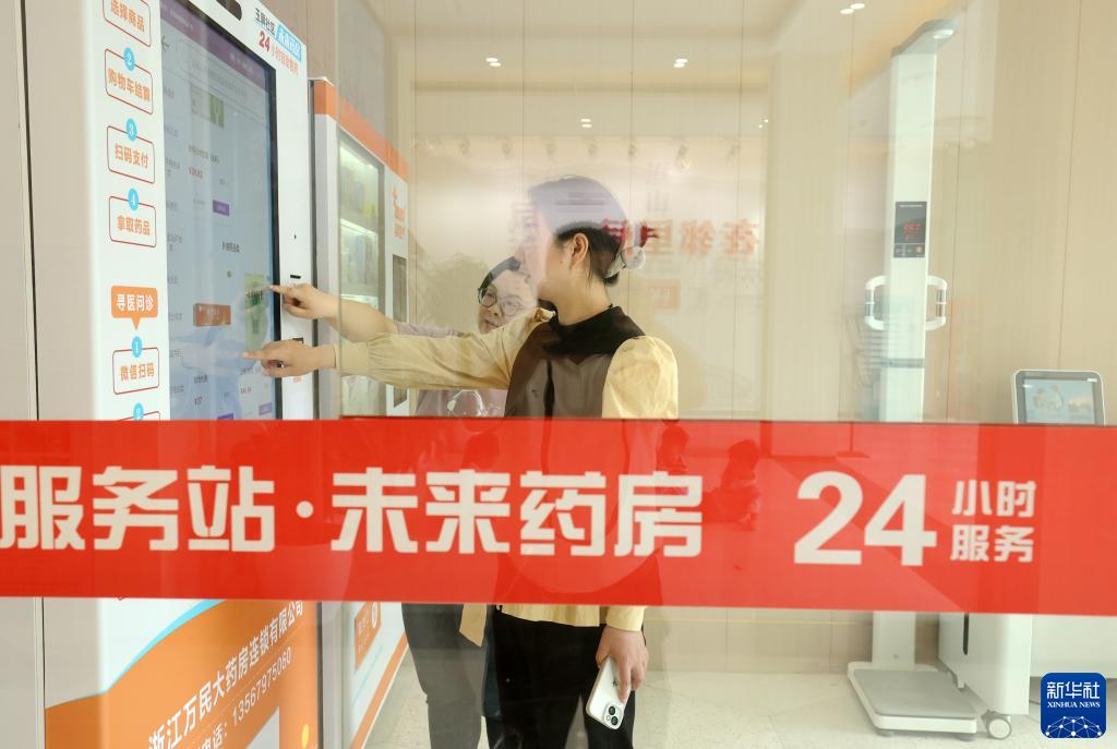 4月20日,居民在湖州市德清縣舞陽(yáng)街道玉屏未來(lái)社區24小時(shí)自動(dòng)售藥機上購買(mǎi)藥品。