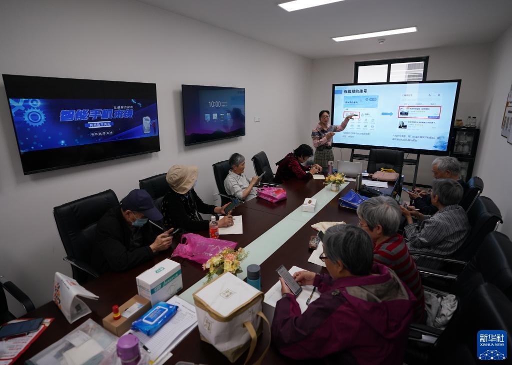 4月20日,志愿者在杭州市西湖區西溪街道求智未來(lái)社區為老年居民進(jìn)行智能手機培訓,教他們通過(guò)智能手機預約掛號。