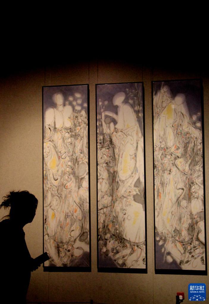 4月20日,觀(guān)眾在山東省美術(shù)館展廳欣賞中國畫(huà)作品。