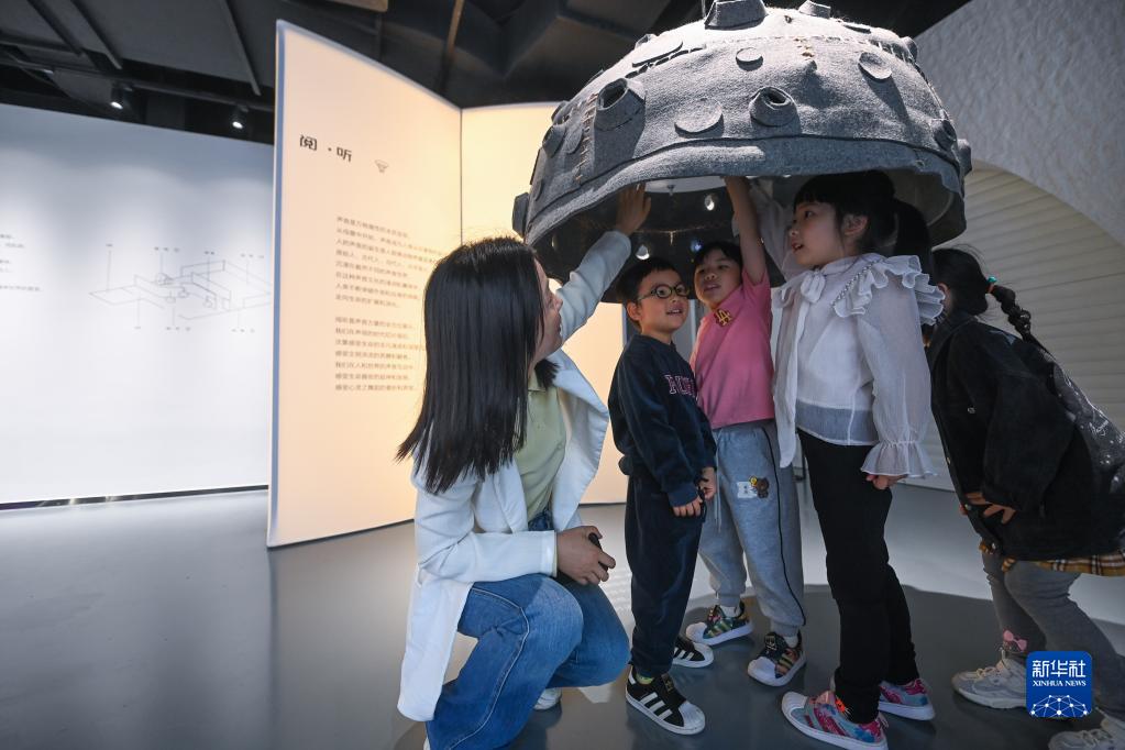 4月21日,小朋友們在老師的帶領(lǐng)下在嘉興市圖書(shū)館元宇宙閱讀體驗館的閱聽(tīng)體驗區聆聽(tīng)自然界的各種聲音。