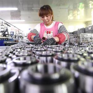 4月21日,河北臨西縣一家軸承生產(chǎn)制造企業(yè)工人在生產(chǎn)車(chē)間工作。
