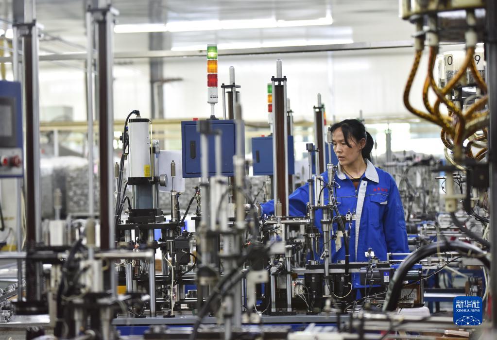 4月21日,河北臨西縣一家軸承生產(chǎn)制造企業(yè)工人在生產(chǎn)車(chē)間工作。