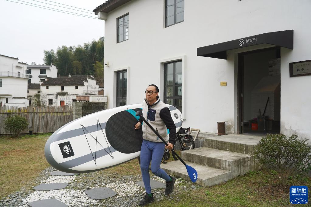 趁著(zhù)婺源全縣大力推進(jìn)鄉村振興的東風(fēng),西北人劉龍2019年來(lái)到婺源縣江灣鎮南坑村經(jīng)營(yíng)民宿。劉龍是位80后,愛(ài)玩兒槳板的他發(fā)現這項運動(dòng)與當地的劃竹排有相似之處。他的民宿前恰好有一條小河流過(guò),他便嘗試在河中劃槳板,和大自然“親密接觸”。夏天時(shí),很多民宿客人也跟著(zhù)他玩起來(lái),劃槳板逐漸成為民宿的一個(gè)“賣(mài)點(diǎn)”。