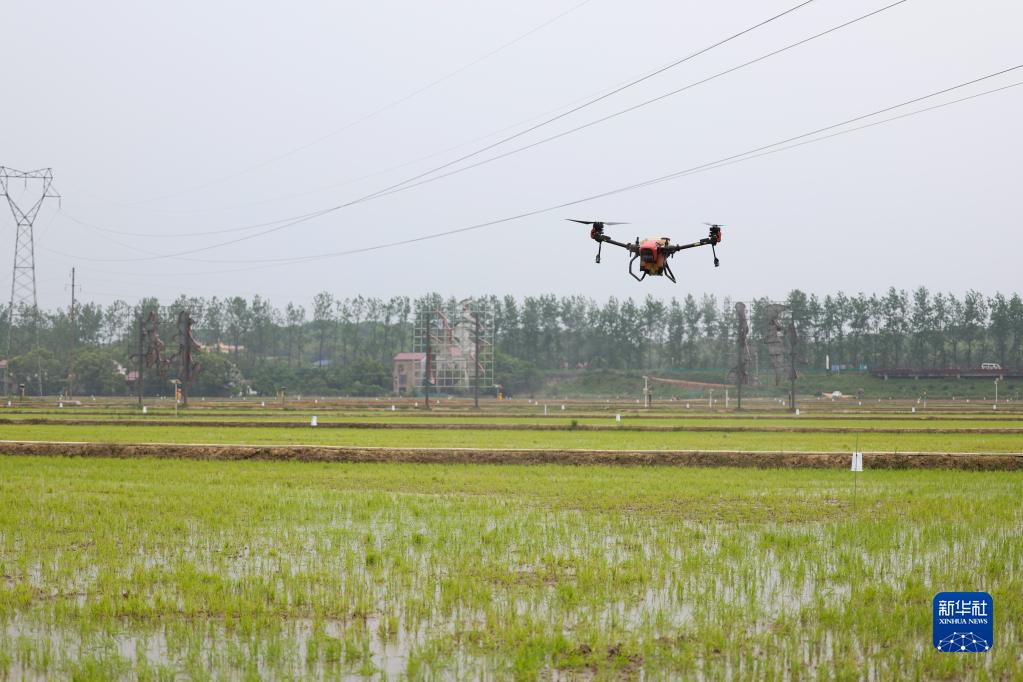 4月21日,在湖南省益陽(yáng)市赫山區中塘村,植保無(wú)人機在田間打藥。