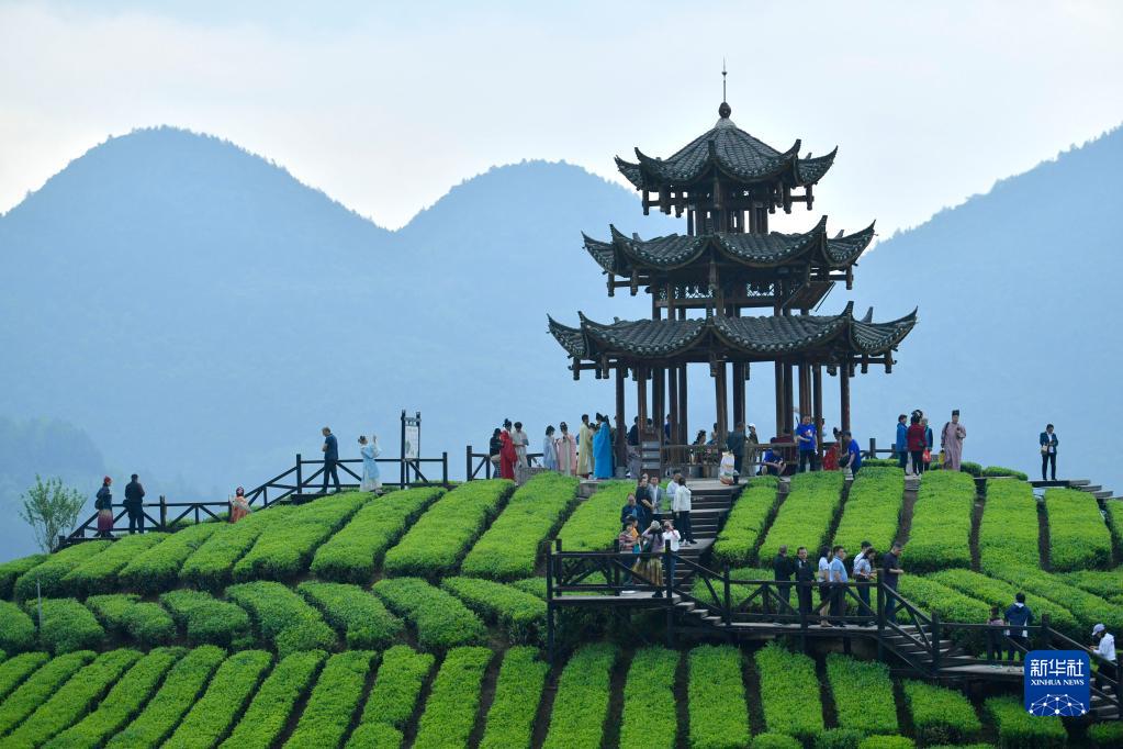 4月21日,游客在宣恩縣伍家臺村茶園游覽。