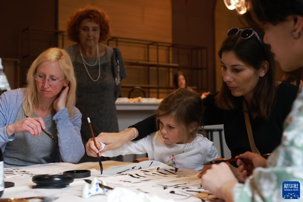 4月20日,在斯洛文尼亞盧布爾雅那,人們在聯(lián)合國中文日慶?;顒?dòng)上體驗書(shū)法。