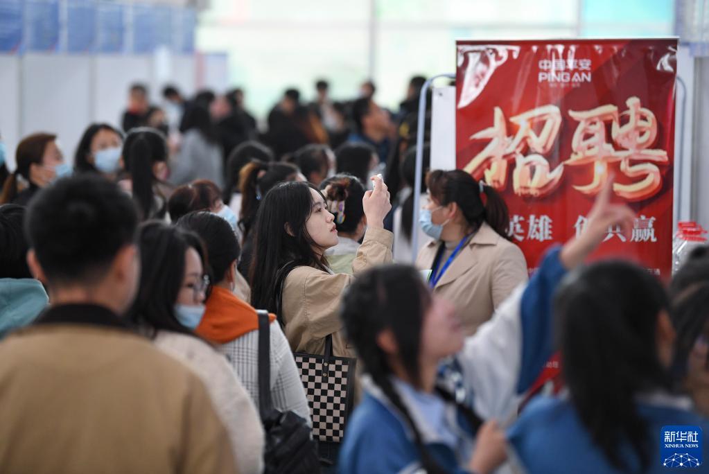 4月21日,求職者在招聘會(huì )現場(chǎng)查看崗位信息。