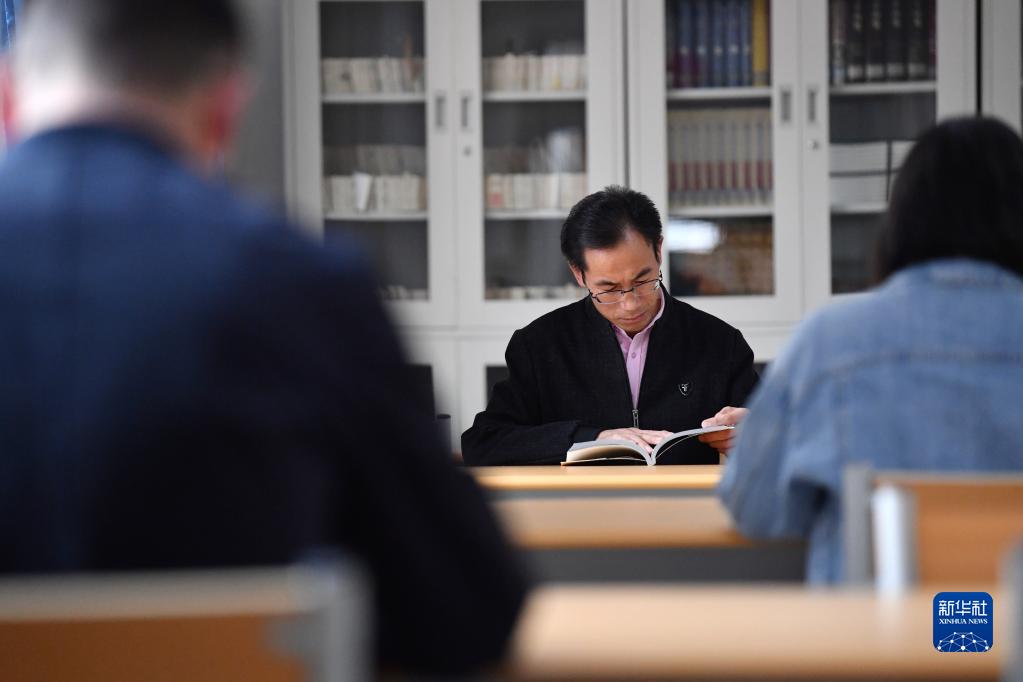 朱彥軍在靜寧縣圖書(shū)館閱覽室看書(shū)(4月10日攝)。新華社記者 陳斌 攝
