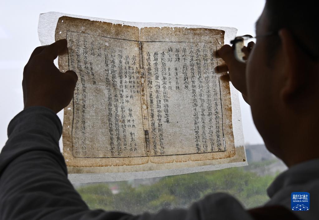 在山西省圖書(shū)館古籍修復中心,程文濤檢查古籍修復情況(4月21日攝)。