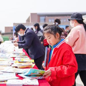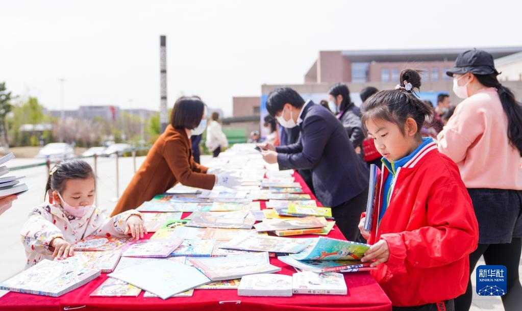 4月22日,市民在吉林省圖書(shū)館前的“換書(shū)大集”挑選圖書(shū)。