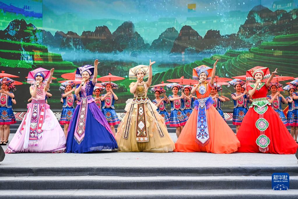 4月22日,在中國—東盟(南寧)非物質(zhì)文化遺產(chǎn)周開(kāi)幕現場(chǎng),演員在表演少數民族歌舞。