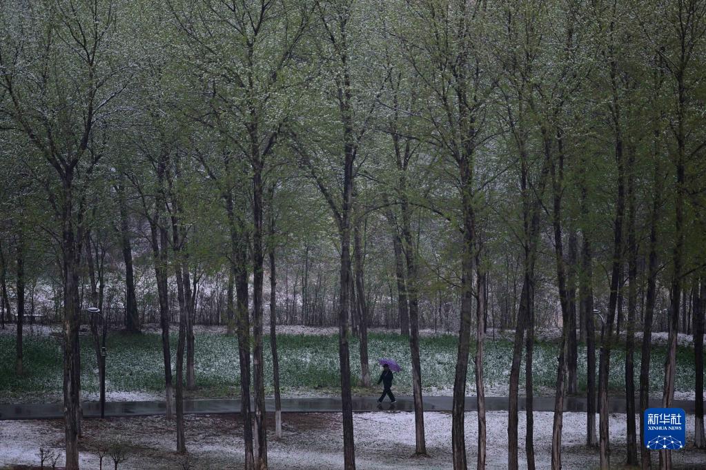 4月22日,市民在青海省西寧市城西區一處森林公園里在行走。