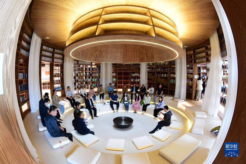 4月21日,人們在安徽省合肥市肥西縣一家民宿的書(shū)店里參加讀書(shū)分享交流會(huì )。