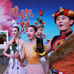 4月22日,身著(zhù)民族服飾的演員在公眾開(kāi)放日活動(dòng)上近距離與觀(guān)眾互動(dòng)。