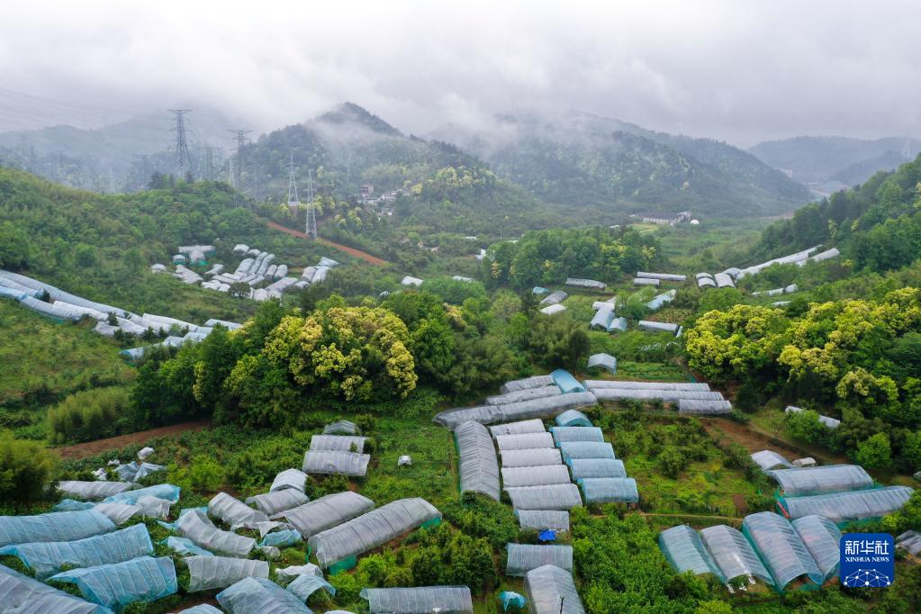 4月23日在杭州市臨安區錦南街道上甘村櫻桃谷拍攝的櫻桃大棚(無(wú)人機照片)。