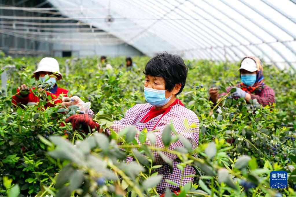 4月23日,村民在惠民縣淄角鎮鄉村振興產(chǎn)業(yè)示范基地采摘藍莓。