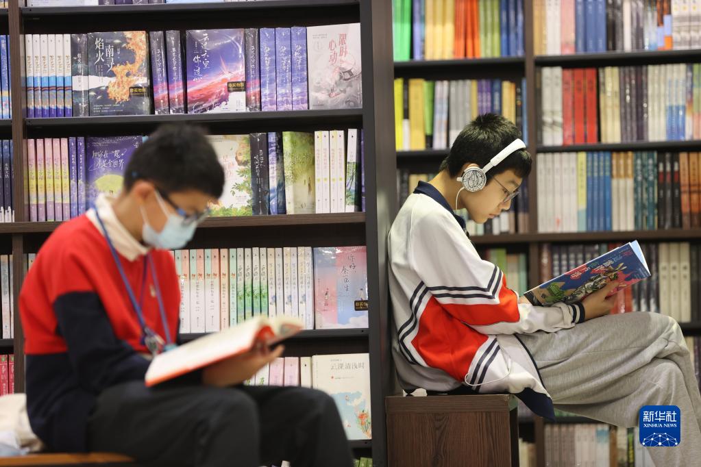 4月22日,學(xué)生在福建省廈門(mén)市思明區一家書(shū)城閱讀書(shū)籍。