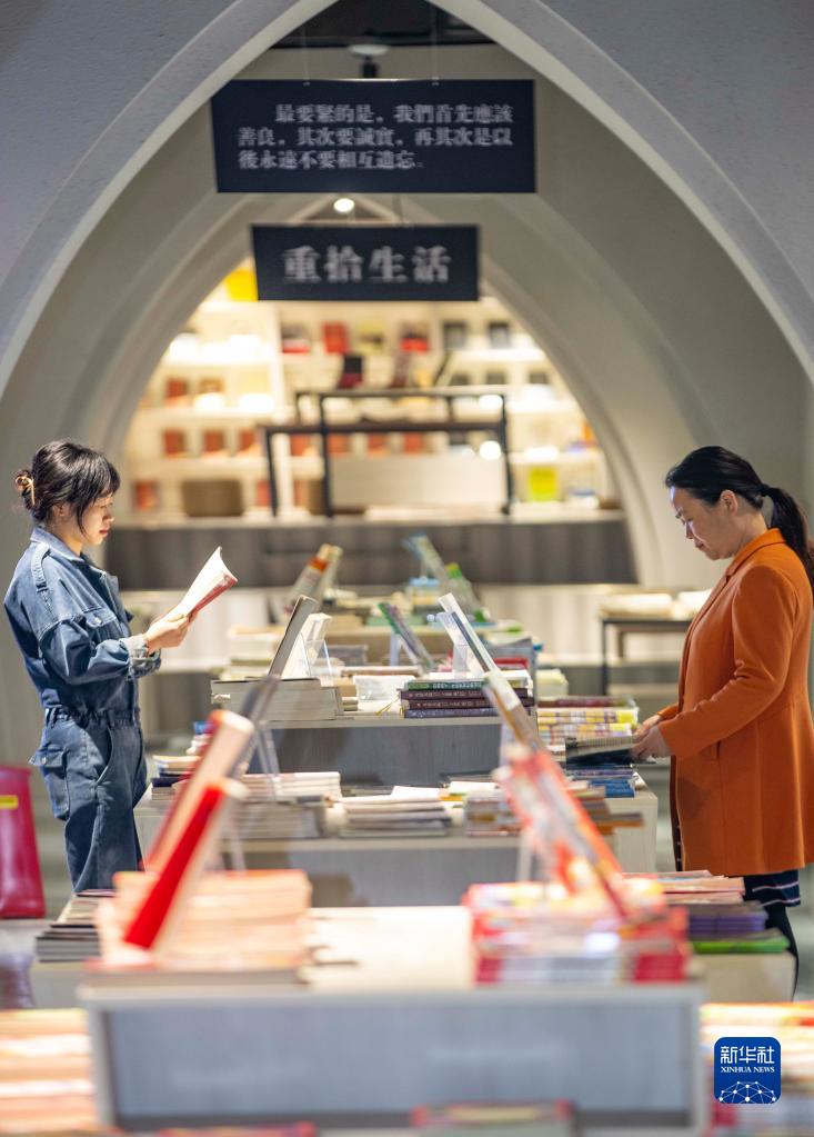 4月23日,市民在江蘇省泰州市幾何書(shū)店閱讀書(shū)籍。