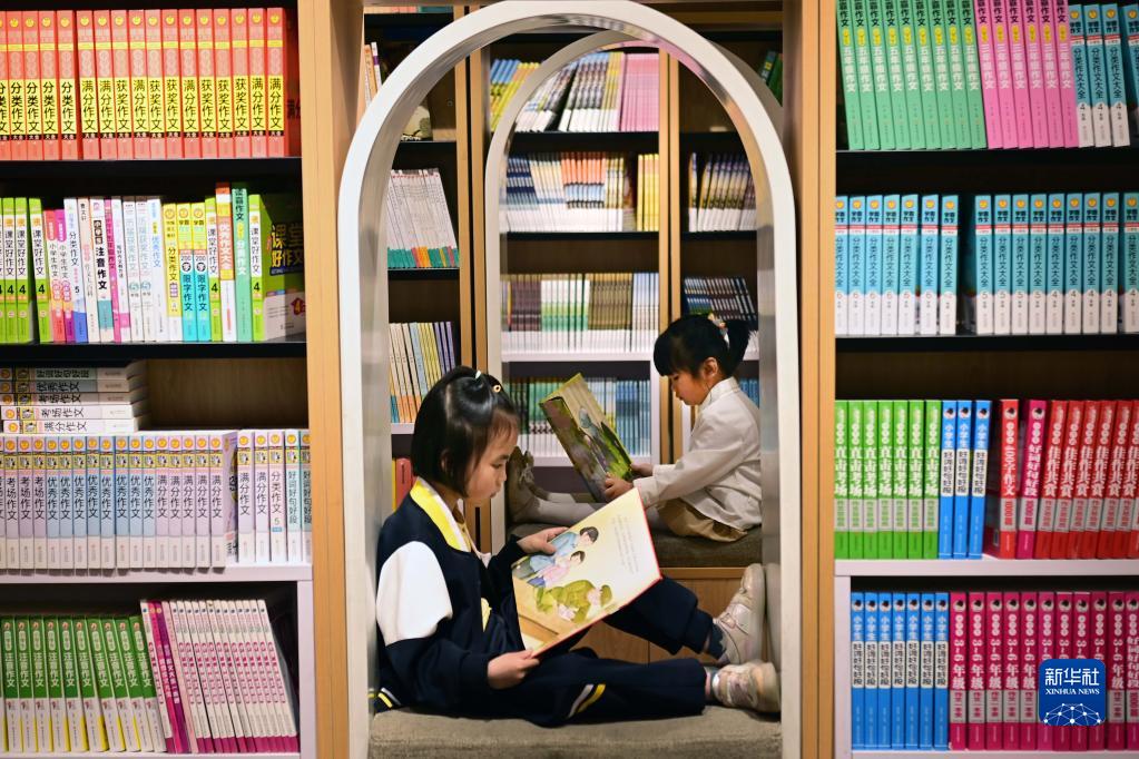 4月19日,位于江西省宜春市萬(wàn)載縣康樂(lè )街道的金星書(shū)吧內,小朋友在閱讀書(shū)籍。