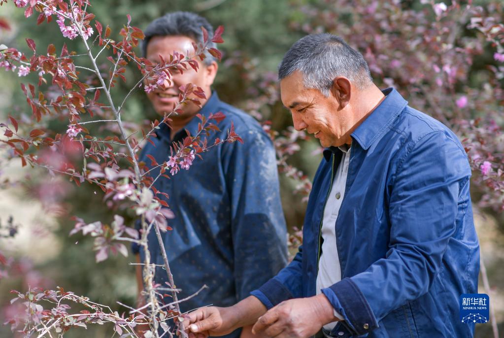 新疆葉城縣一處種苗場(chǎng)內,人們在挑選樹(shù)苗準備栽種(4月16日攝)。