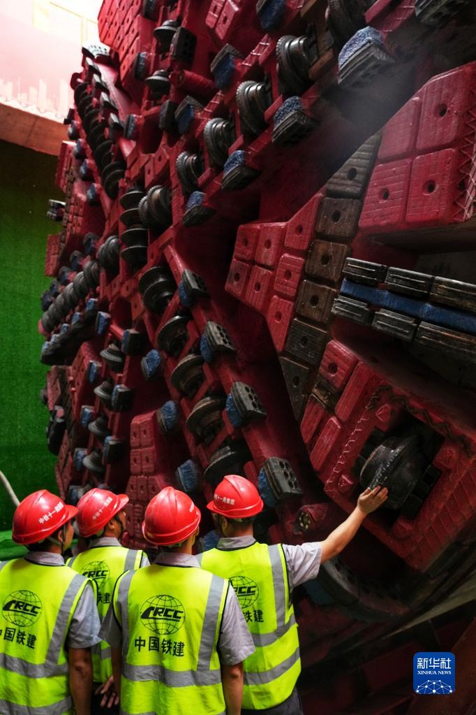 4月24日,中鐵十一局技術(shù)人員檢查準備始發(fā)的“鐵兵廣花13號”盾構機刀盤(pán)。