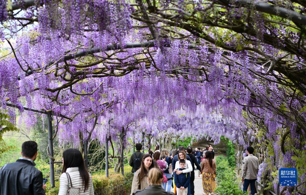 意大利佛羅倫薩巴爾迪尼花園近日紫藤花盛放,吸引眾多游客前來(lái)觀(guān)賞。