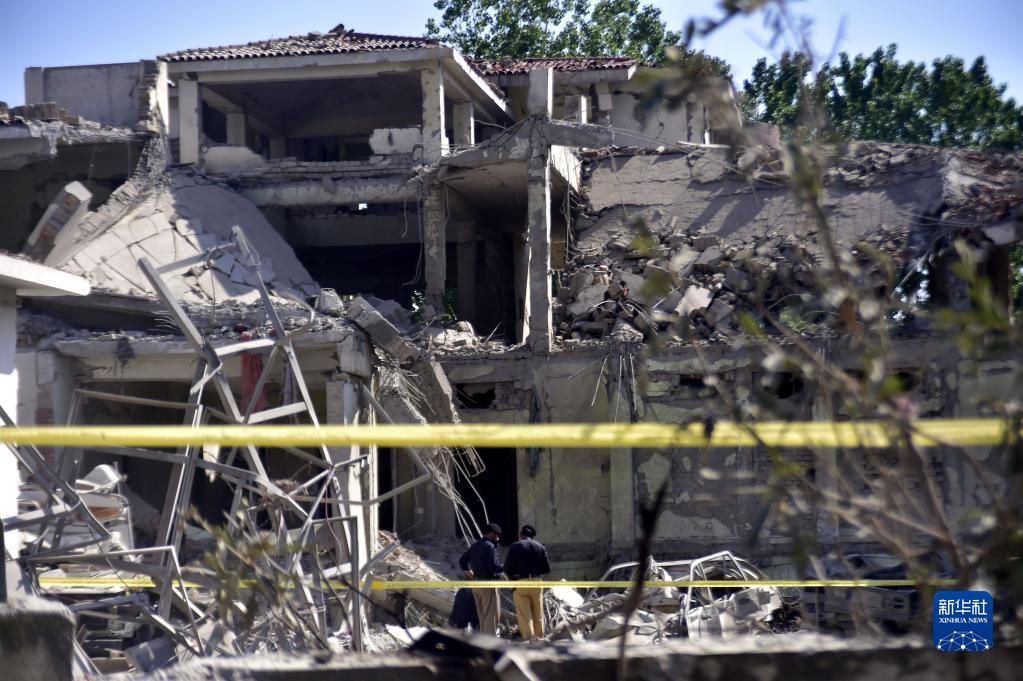 這是4月25日在巴基斯坦斯瓦特地區拍攝的爆炸襲擊現場(chǎng)。