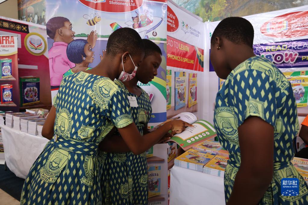 4月24日,在加納首都阿克拉舉辦的圖書(shū)展上,幾名學(xué)生在閱讀圖書(shū)。