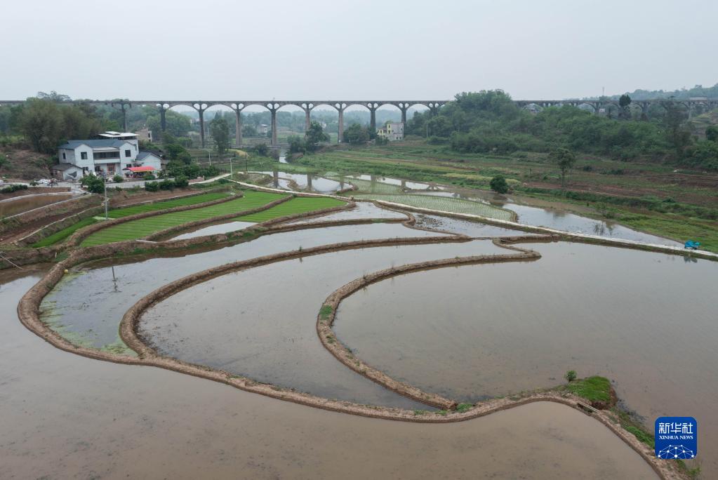 4月25日在瀘縣奇峰鎮遠眺寶藏渡槽(無(wú)人機照片)。