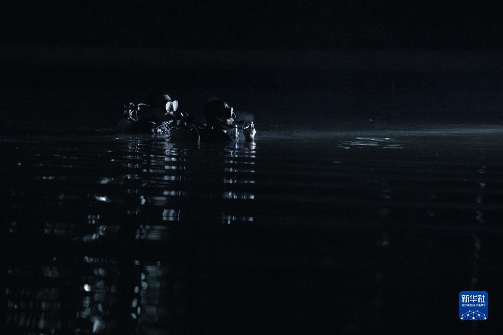 東部戰區陸軍第72集團軍某特戰旅特戰八連組織官兵進(jìn)行夜間潛水訓練(2020年12月17日攝)。新華社發(fā)(胡雪峰 攝)