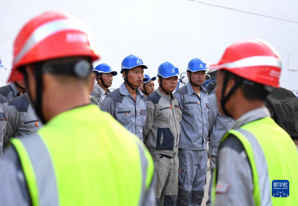清晨六點(diǎn)多,電力工人在班會(huì )上分配一天的任務(wù)(4月20日攝)。