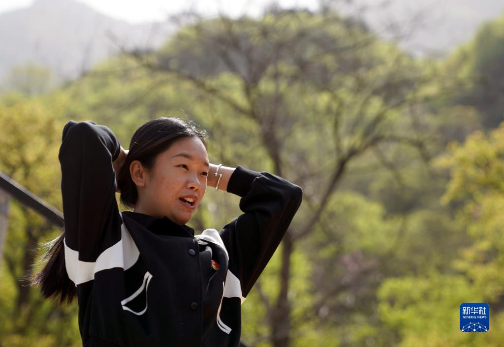 陳曉麗在幫村民胡金英干活前扎起頭發(fā)(4月18日攝)。新華社記者 李安 攝