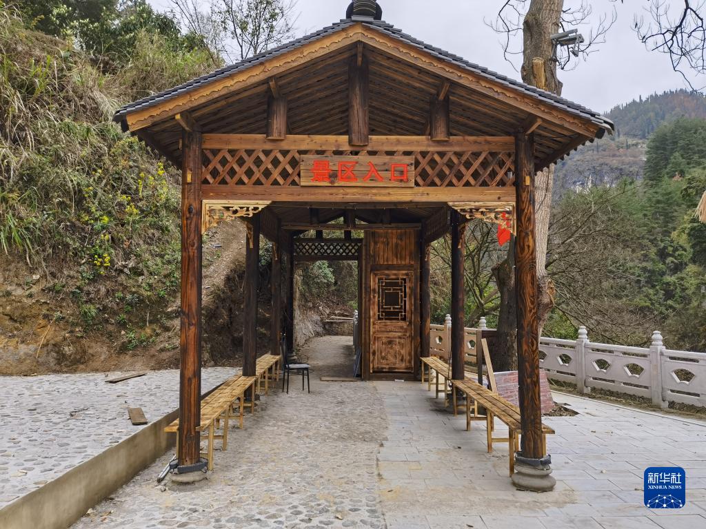 這是2023年3月18日拍攝的正在升級改造的貴州省開(kāi)陽(yáng)縣香火巖瀑布景區入口(手機照片)。