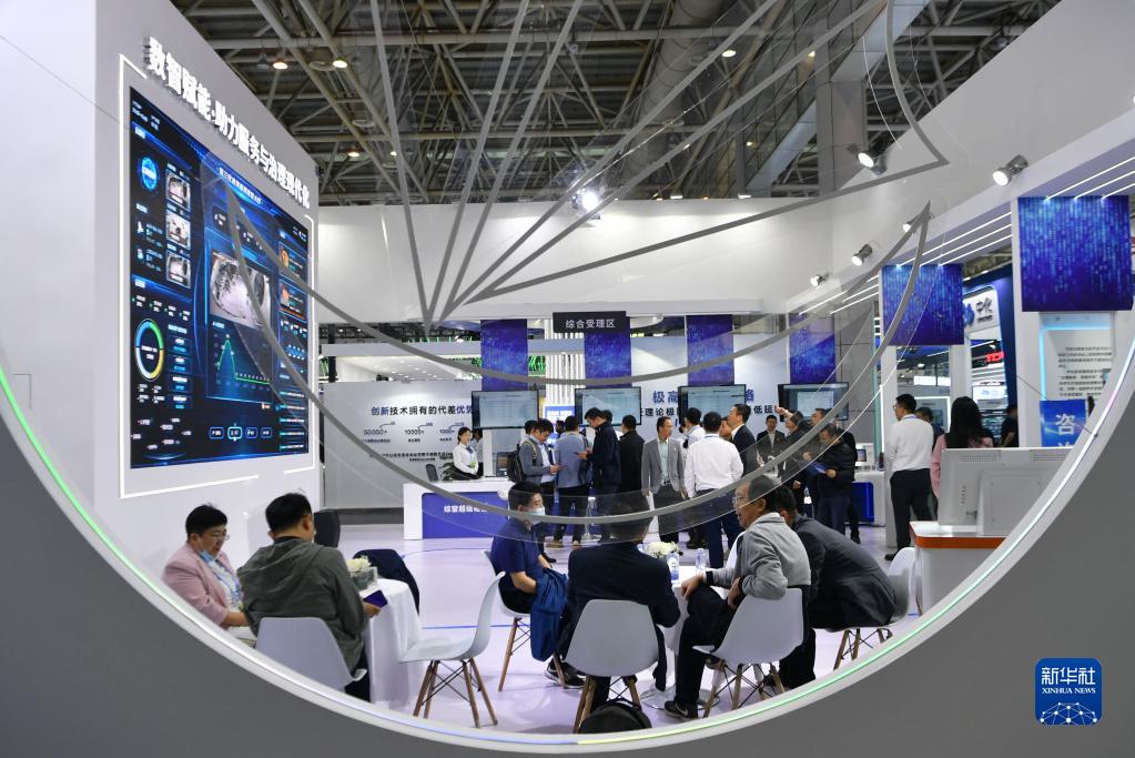 4月26日在第六屆數字中國建設成果展覽會(huì )上拍攝的數智賦能·助力服務(wù)與治理現代化展區一景。