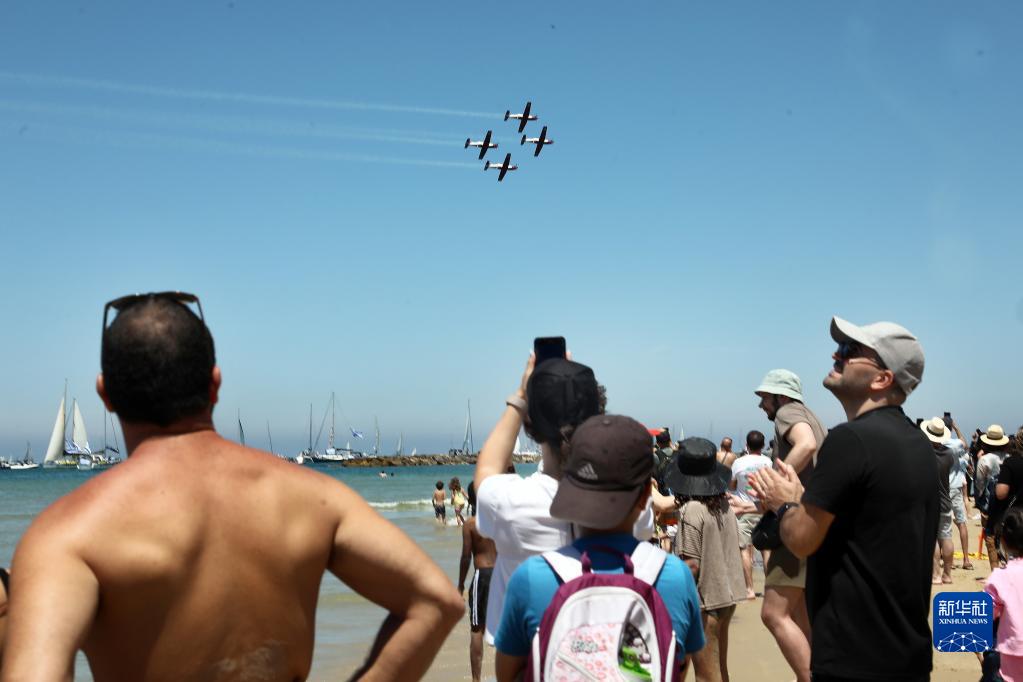4月26日,在以色列特拉維夫,人們觀(guān)看飛行表演。