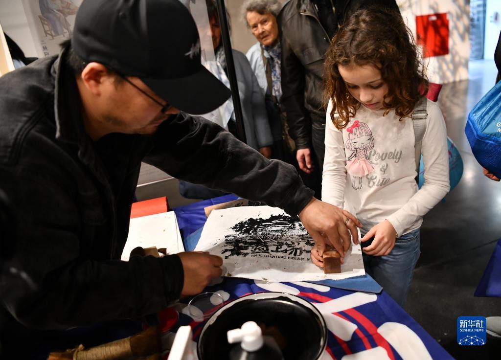 4月25日,在意大利佛羅倫薩舉辦的國際手工藝展覽會(huì )上,一名兒童體驗中國木版年畫(huà)拓印互動(dòng)項目。