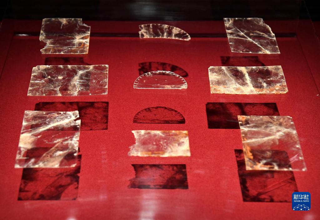 這是曹操高陵遺址博物館內展出的云母片(4月22日攝)。