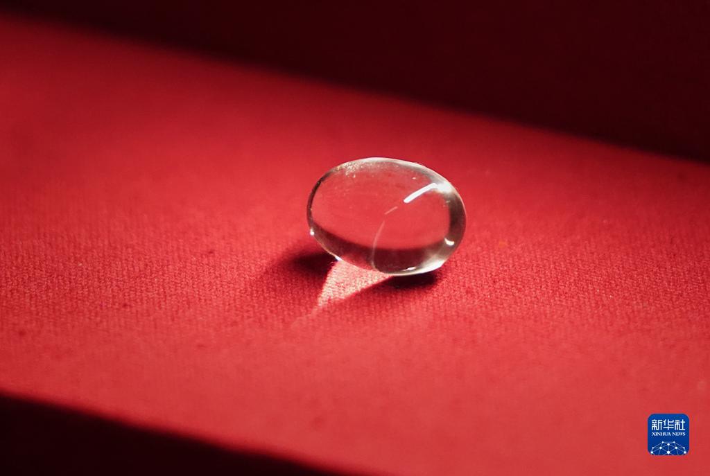 這是曹操高陵遺址博物館內展出的水晶珠(4月24日攝)。