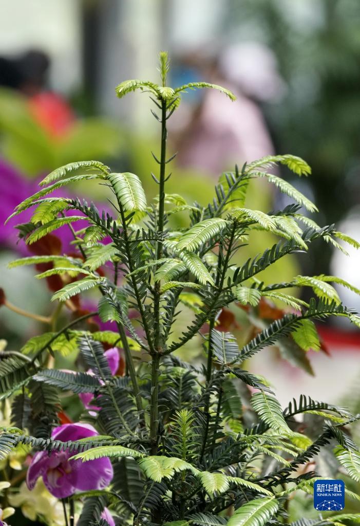 這是4月27日在國家植物園溫室內拍攝的蓖子三尖杉。