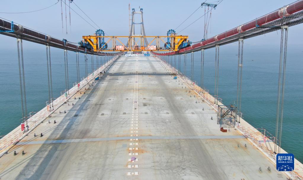 這是4月28日拍攝的深中通道伶仃洋大橋橋面(無(wú)人機照片)。