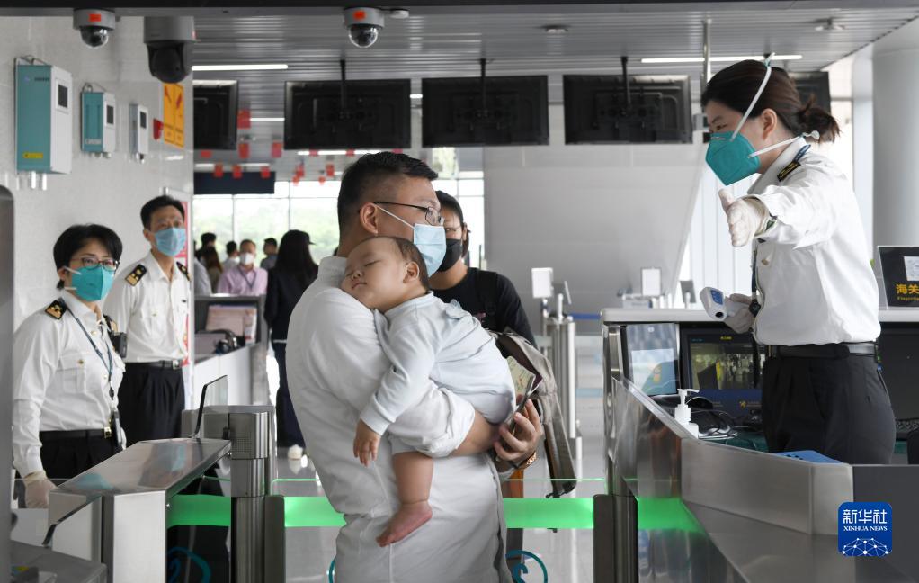 4月28日,旅客在廣州琶洲港澳客運口岸進(jìn)行海關(guān)衛生檢疫,準備前往香港國際機場(chǎng)。