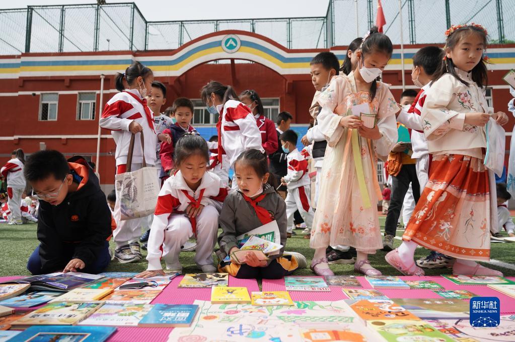 當日,位于北京市海淀區的人大附中實(shí)驗小學(xué)舉辦校園讀書(shū)節活動(dòng)。本次讀書(shū)節的主題為“閱讀傳承經(jīng)典 創(chuàng )作點(diǎn)亮未來(lái)”,活動(dòng)現場(chǎng)各班級設置“流動(dòng)書(shū)角”,讓學(xué)生交換圖書(shū),豐富閱讀選擇。與此同時(shí),活動(dòng)通過(guò)引導學(xué)生讀繪本、童話(huà)故事及經(jīng)典名著(zhù),將讀書(shū)所得用朗誦、戲劇表演等形式展示,激發(fā)學(xué)生的閱讀興趣。