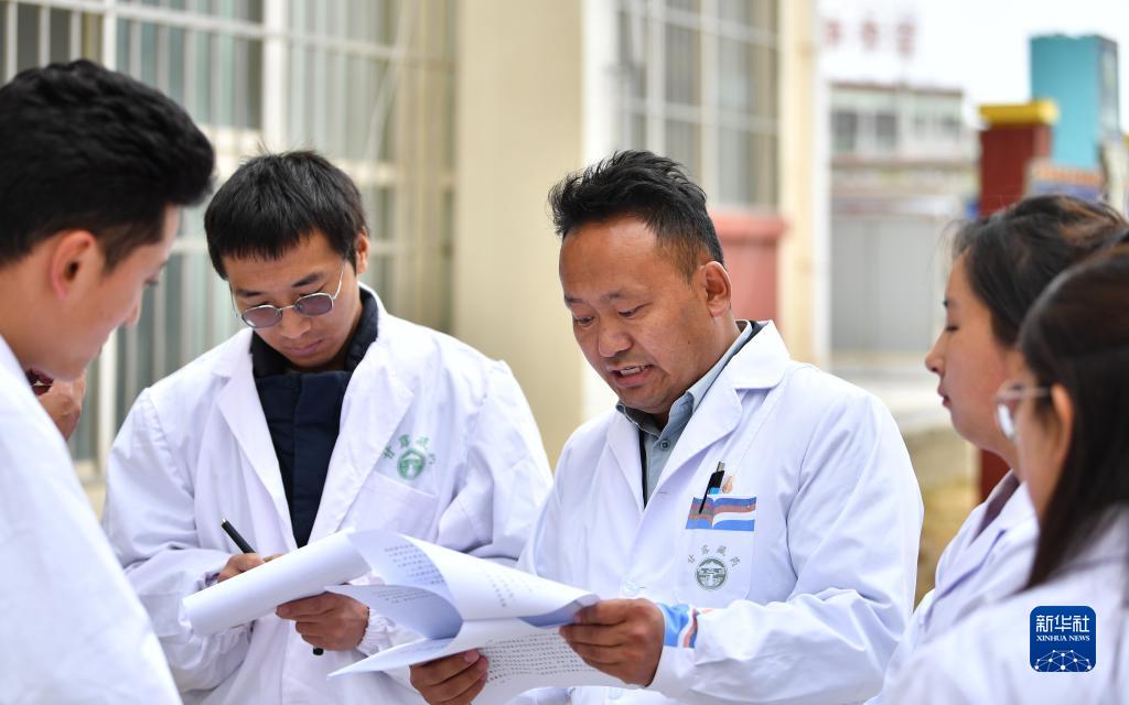 普窮次仁和學(xué)生們一起學(xué)習中醫藥相關(guān)政策(4月20日攝)。