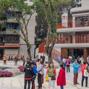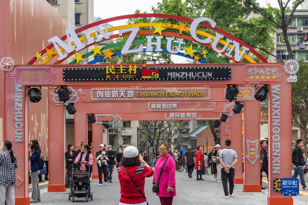 4月28日,重慶市九龍坡區謝家灣街道民主村片區城市更新項目(一期)正式竣工亮相,市民游客前來(lái)打卡。