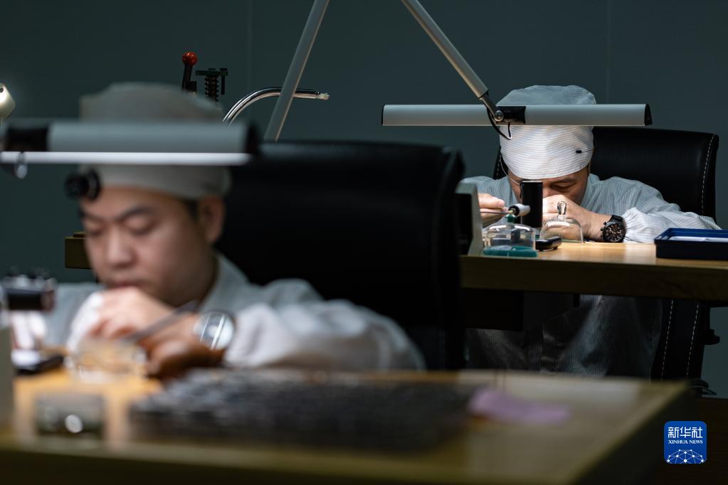 4月25日,在位于深圳的飛亞達鐘表大廈,劉中華裝配手表(右)。新華社記者 毛思倩 攝