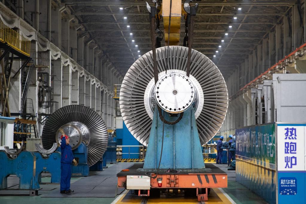 4月28日,工作人員在哈電集團哈爾濱汽輪機廠(chǎng)有限責任公司車(chē)間內工作。