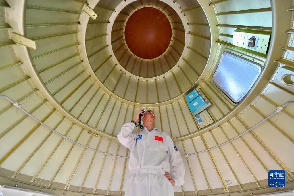 4月19日,在航天科技集團一院天津火箭公司總裝測試車(chē)間,駱鑫生認真核查火箭某部件。
