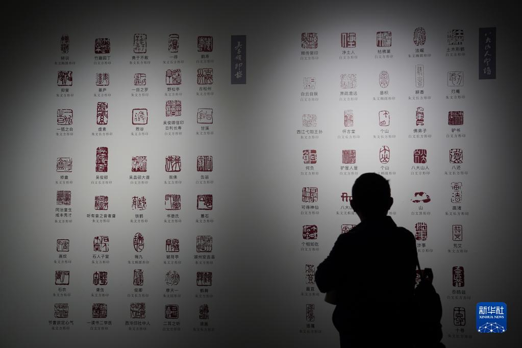 4月29日,觀(guān)眾在參觀(guān)八大山人和吳昌碩的印章對比。